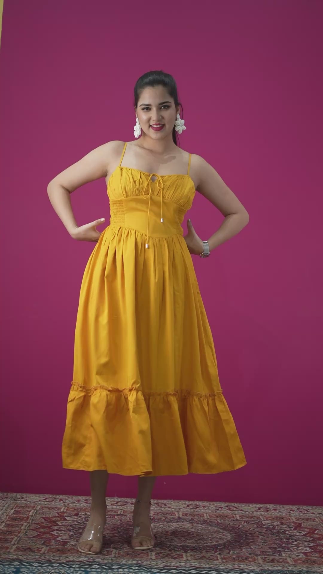 A chic long sleeveless dress featuring a stylish knot detail at the front and smocking at the back for a flexible, comfortable fit — perfect for a casual yet elegant look.